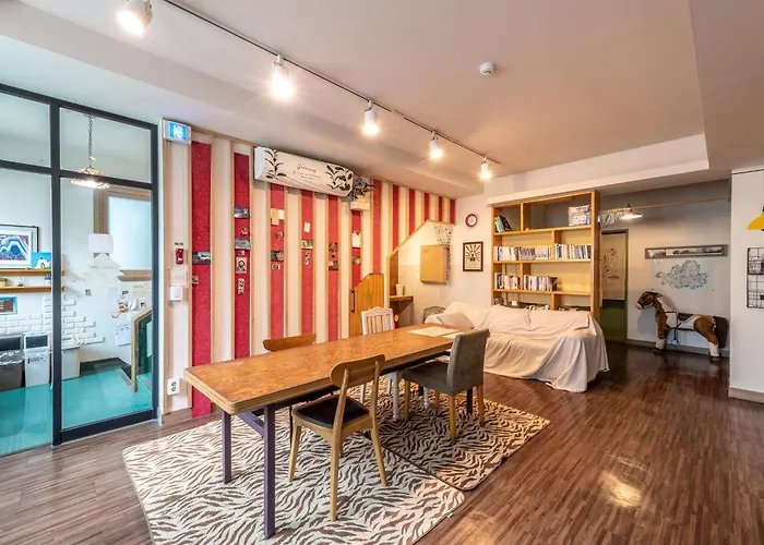 Offrant un restaurant et une laverie, Bunk Guesthouse Hongdae Séoul se trouve dans le voisinage de "Hongdae" à Séoul, à seulement 1 km du musée Trickeye et à 25 minutes à pied du Parc des couleurs de Séoul. Situé à 10 minutes de marche de l'Université d'Hongik, l'hotel dispose de 40 chambres avec vue sur la ville.